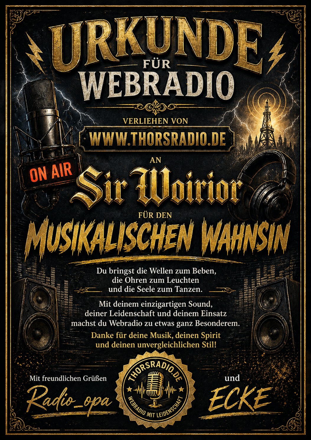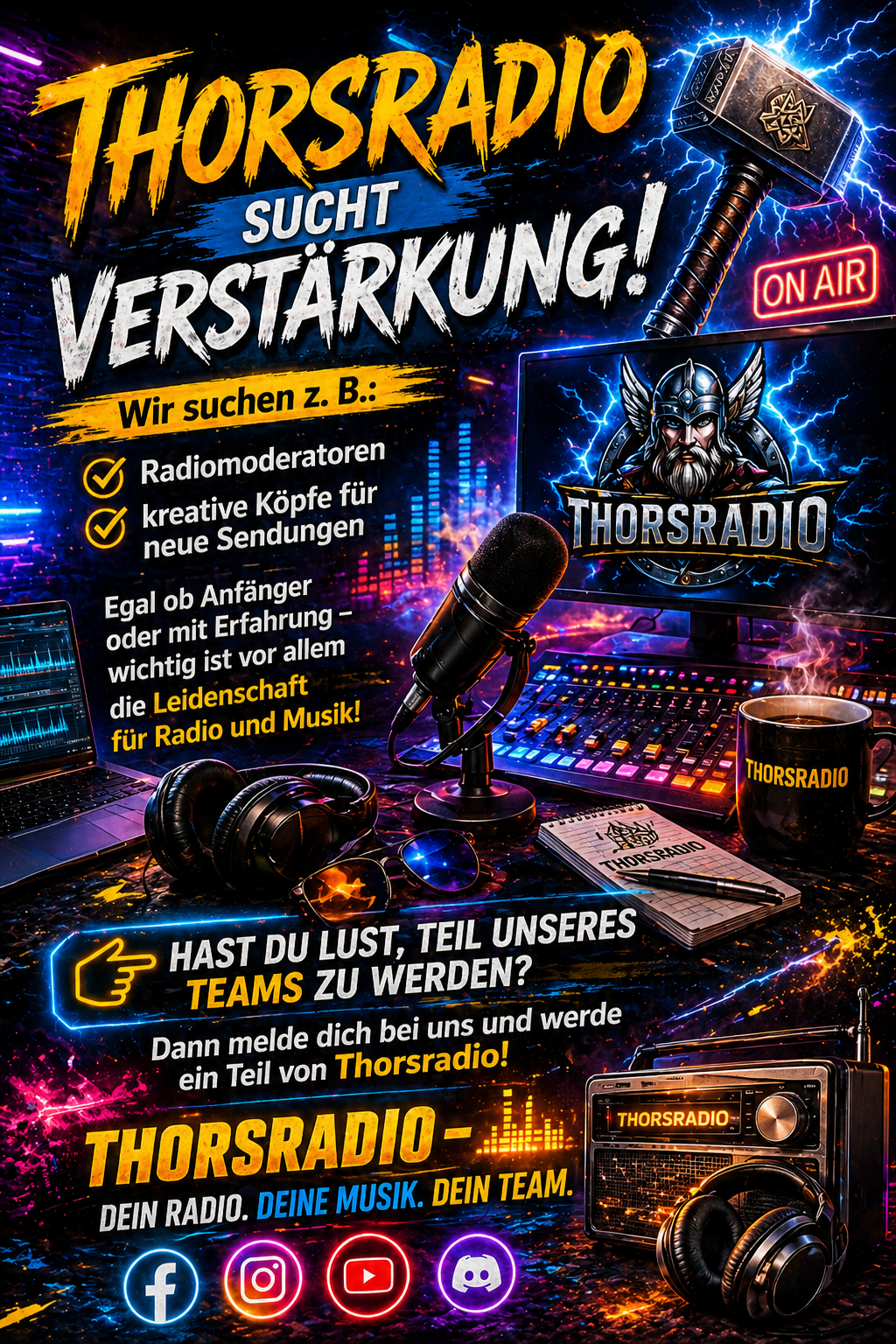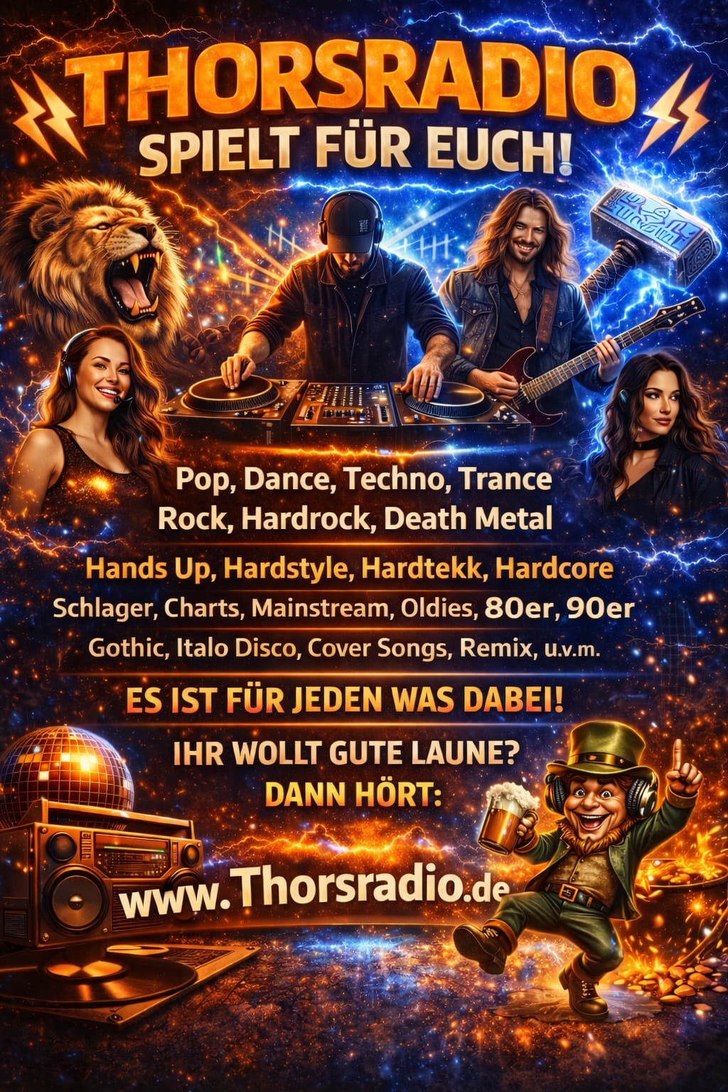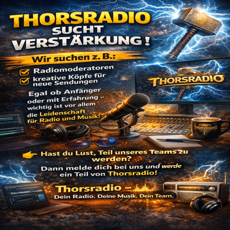 +++ Herzlich Willkommen bei Thorsradio +++ Wir spielen für euch die Musik für Körper und Geist - Bei uns fühlt man den Beat und spürt das Donnern der Boxen +++ Hast Du Lust bei uns mitzumachen? Dann fülle unser Bewerbungsformular aus und vielleicht bist Du schon bald bei uns "Live on Air" +++